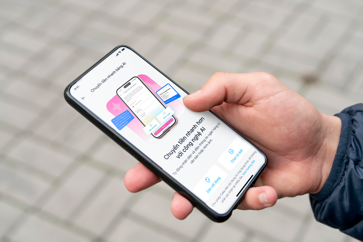 Đặc biệt, "Chuyển tiền nhanh AI" của Cake cho phép người dùng chuyển tiền bằng cách dán hình ảnh hoặc tin nhắn chứa thông tin chuyển khoản, AI sẽ tự động nhận diện và điền đầy đủ các trường thông tin như số tài khoản, ngân hàng thụ hưởng, số tiền, và nội dung chuyển khoản, giúp thao tác nhanh chóng và chính xác hơn